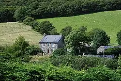 The coast of Ceredigion is made up of a long coastal plain that contains high cliffs, coves, large bays and estuaries. The coastal plain gets narrower towards the more mountainous north of the county [1] and is cut by the wide estuaries of the Teifi and the Dyfi.[2] The broad and fertile Teifi valley is ideal for dairy farming and mixed farming.[3][4] Heavy rainfall washes the minerals out of the soil and results in the mountainous areas of the county having relatively poorer, acidic soils. The plough line can be as low as 700 feet, which restricts cultivation.[5][6]