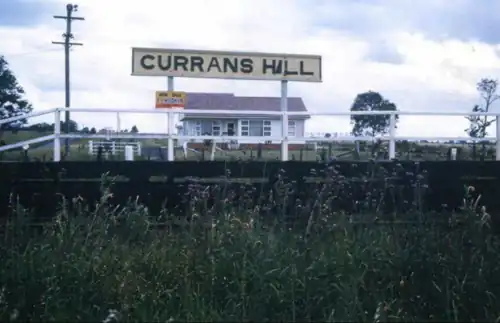 Currans Hill railway station was a railway station on the Camden railway line, serving the suburb of Currans Hill, New South Wales, Australia. It was located in what is now the modern-day suburb of Smeaton Grange.