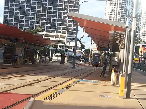 Cypress Avenue light rail station is an important public transport interchange in the Gold Coast suburb of Surfers Paradise. The station is part of the Gold Coast's G:link light rail system situated on the corner of Cypress Avenue and Surfers Paradise Boulevard. The G:link connects Broadbeach South with Helensvale railway station[1] via the key activity centres of Surfers Paradise and Southport. Cypress Avenue also provides a bus connection[2] to Nerang via the Nerang railway station.