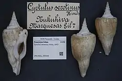 2. ^ Cyrtulus serotinus Hinds, 1843. Retrieved through: World Register of Marine Species on 18 April 2010.