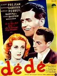 Dédé is a 1935 French musical comedy film directed by René Guissart and starring Danielle Darrieux, Albert Préjean and Mireille Perrey.[1] It is based on the 1921 operetta Dédé by Albert Willemetz with music by Henri Christiné, and is in the tradition of operetta films.[2] The films sets were designed by the art directors Henri Ménessier and René Renoux.