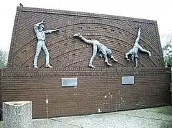 Cartwheelers are found in several fountains in the city. The best known is Radschlägerbrunnen (Cartwheeler Fountain) in the Burgplatz, created in 1954 by Alfred Zschorsch, with Hans Müller-Schlösser's inscription "Radschläger wolle mer blieve, wie jeck et de Minschen och drieve" ("We want to keep being cartwheelers, no matter how crazy the world might be").[1]