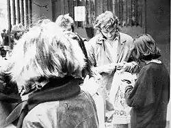 The Dąbrówka history of the 1980s reflects the tumultuous history of the country. In 1980 the staff founded a branch of Solidarność trade union;[84] in 1981 the students made sure that a cross presented to the school by the Pope was during a solemn ceremony[85] placed in the school foyer.[86] The cross was withdrawn into a locked "memory hall" in 1982; this in turn caused that flowers were laid and removed from its doors.[87] Some students were being detained during street riots or leafleting campaigns;[88] unofficial scouting was implanted as a Green Six team.[89] A large[90] December 13, 1985 gathering of students marking the 4th anniversary of martial law decree produced disciplinary measures, though no-one has been expelled.[91] In 1986 secret security operatives detained a student in the school building[92] while official launch of the 1986/87 schooling year turned into a scandal.[93] In the late 1980s Dąbrówka became the nucleus of a sub-culture "Naszość" group.[94] The cross was placed back in the foyer in 1991;[95] in the new era changes among the managing board ensued.[96] An initiative which would prove of high importance later was the launch of a broadened curriculum of German in 1987; Dąbrówka commenced collaboration with a school from West Berlin, resulting in students’ exchange starting the year of 1988.[97]