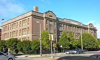 The historic building was designed by Irwin T. Catharine and built in 1922–1924. It is a three-story, eight-bay, brick building on a raised basement in the Colonial Revival-style. It features two projecting entrances with stone surrounds and a brick parapet.[2]