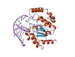 - ^ Lee HW, Dominy BN, Cao W (September 2011). "New family of deamination repair enzymes in uracil-DNA glycosylase superfamily". The Journal of Biological Chemistry. 286 (36): 31282–31287. doi:10.1074/jbc.M111.249524. PMC 3173141. PMID 21642431.