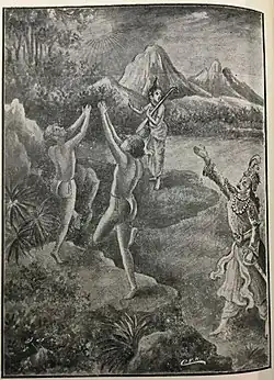 Daksha (right) cursing Narada, an illustration from a 20th-century book.