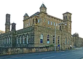 Dalton Mills is a 19th-century Grade II* Victorian former textile mill located in Keighley, West Yorkshire, England. It was roughly 45,681 sq ft (4,243.9 m2) in size.[1] Previously used as a set for Peaky Blinders, it was once claimed to be the largest textile mill in Yorkshire, massing over 2,000 employees. The internal parts of the building were destroyed by a large fire that broke out on 3 March 2022.