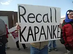 Kapanke was subject to an active recall effort to remove him from his seat in the Wisconsin Senate, as part of the 2011 Wisconsin protests. On March 2, 2011, the "Committee to Recall Kapanke" officially registered with the Wisconsin Government Accountability Board.[8] 15,588 valid signatures of electors residing within the 32nd District had to be collected by May 2, 2011 to generate a recall election.