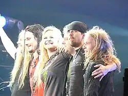 On September 22, 2007, the band hosted a secret concert at Rock Café in Tallinn, Estonia, disguising itself as a Nightwish cover band called "Nachtwasser".[1] Their first official concert with the new singer was in Tel Aviv, Israel on October 6, 2007.[2] The tour thus started, visiting the United States, Canada, most of Europe, Asia, and Australia.[3][4] In 2008, the band played over 100 shows, with concerts in Oceania, Europe and Asia. In November, the band played in South America, and later took a three-month break; Nightwish started the third leg in 2009, with dates in North America and Europe, and also attended various summer festivals, including Graspop Metal Meeting and Masters of Rock. The last show was played at Helsinki Hartwall Areena, with an attendance of 11,000 people.