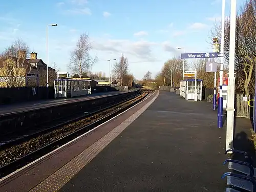 The station is currently unstaffed, with waiting shelters on each platform; step-free access is available to both.[4] Ticket machines are available, along with a long-line P.A system and passenger information screens to convey train running information.