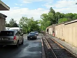 By 2009, South Coast Rail plans called for new MBTA Commuter Rail service between Boston and Fall River and New Bedford to be routed over the former Dighton and Somerset line via Stoughton.[5] The 2011 Draft Environmental Impact Statement analyzed service via Dean Street or via the Whittenton Branch.[6] The 2013 Final Environmental Impact Statement selected the former route, with a Taunton station to be built near Dean Street. Preliminary designs called for a 800-foot-long high-level platform to be constructed just north of the historic building to serve a single passenger track; a freight passing track would also be added.[7] The passing track was not present in original designs, but was added because the original one-track design would have prevented some wide freight trains from using the line.[8]