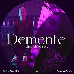 "Demente" is a song by South Korean singer Chung Ha and Puerto Rican rapper Guaynaa from her first Korean studio album Querencia. It was released on February 15, 2021, through MNH and 88rising. The song is the thirteenth track on the album, and was written by Lao Ra, Guaynaa, Tinashé Fazakerley and Vincenzo and produced by him and Fuxxy. "Demente" solidifies the singer's "versatility as she flawlessly sings in Spanish and Korean" over a reggaeton beat. The song marks the first collaboration between a Korean female soloist and a Latin singer. Lyrically, the song tell a story of a confused love that causes great sadness due to the lack of interest from a lover.