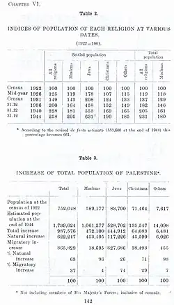 - ^ Survey of Palestine, p140. "the expansion of the Moslem and Christian populations is due mainly to natural increase, while that of the Jews is due mainly to immigration."