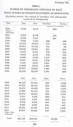 - ^ the Peel Commission report, pp. 125,282. "unlike the Jewish, the rise has been due in only a slight degree to immigration."
