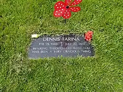 Farina died on July 22, 2013 at the age of 69, in a Scottsdale, Arizona hospital from a pulmonary embolism.[15][16] He was buried at Mount Carmel Cemetery in Hillside, Illinois.
