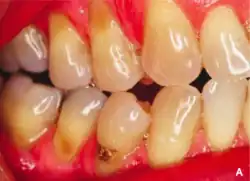 The bristles combined with forceful brushing techniques applied can roughen the tooth surface and cause abrasion as well as aggravating the gums.[11] Repetitive irritation to the gingival margin can eventually cause recession of the gums. When the gums recede, the root surface is exposed which is more susceptible to abrasion.[12] Comparatively, electric toothbrushes have less abrasive tendencies.[13]