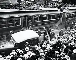 The strike brought the city to a standstill. On August 3 Jerome arrived by train with his first 37 men, a mix of college students, guards, detectives, and men "of a minor criminal class familiar to police departments east and west".[5] Jerome's men were obviously armed, not only with their own weapons, but armed by the city as deputized special officers.