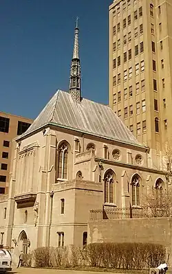 Built in 1931-33 for the Firmin Desloge Hospital, now St. Louis University Medical Center, the chapel serves as an ecumenical pastoral chapel for the hospital complex, and is formally designated the Chapel of Christ the Crucified King by the Roman Catholic church within the Archdiocese of St. Louis.[1]