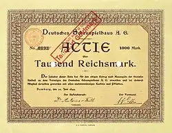 Founder share of the Deutsches Schauspielhaus AG, issued 20. June 1899