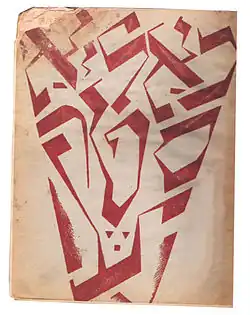 Moishe Broderzon's poem was chosen as a motto of the journal. "Mir yungen, mir a freylekhe tsezungene khalyastre / Mir geyen in an umbavustn veg, / In tife moreshkhoyredike teg / In nekht fun shrek / Per aspera ad astra!" (We, the young, a happy, boisterous gang / We're trodding on an unknown path / through deeply melancholic days / through nights of fright / Per aspera ad astra!). The poem was first published in Moshe Broderzon's journal Yung-yidish in Łódź, 1919.[4]