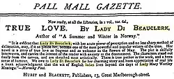 Advertisement in The Pall Mall Gazette for second book by Lady Di Beauclerk, 12 May 1869