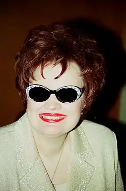 In 1996, Schuur appeared as a guest performer on Sesame Street. In an interview by Elmo, she answered questions about how a blind person can learn to use other senses to get along in the world.[36] In 1998, she was a special guest on "Ray Charles in Concert", a benefit for the Miami Lighthouse for the Blind.[37][38][39] She performed at Carnegie Hall in a tribute to Irving Berlin in 1988, and again in 1996 in a tribute to Ella Fitzgerald.[40][41] Schuur gave a performance in 1999 to honor Stevie Wonder at The Kennedy Center Honors.[42] She sang "I Just Called to Say I Love You" arranged and accompanied by Herbie Hancock. Entertainment writer Jake Elyachar rated this as one of the top 20 best performances ever given on the Kennedy Center Honors series. Wonder was visibly emotionally moved by the performance.[43] She was awarded the Helen Keller Achievement Award by the American Foundation for the Blind in 2000.[44][45] Late in 2003, Schuur released Midnight, featuring original songs written by Barry Manilow for the album. Manilow's long-time songwriting team, which included co-producer Eddie Arkin, and lyricists Marty Panzer, Bruce Susan, and Adrienne Anderson, contributed to the project.[41] Manilow produced the album and also performed on it. The guest artists were Brian McKnight and Karrin Allyson and it was backed by Tony-winner Bill Elliott and the Bill Elliott Swing Orchestra.[46][47] Her second live album, Diane Schuur: Live In London, was recorded at Ronnie Scott's, a historic jazz club in London's Soho district.[48] Scott's is the site of previous live albums by Ella Fitzgerald and Nina Simone.[49]
