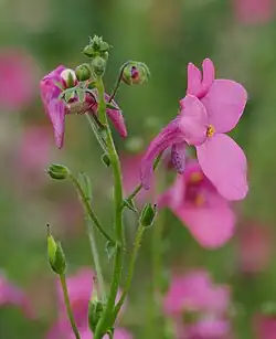 Diascia is a genus of around 70 species[1] of herbaceous annual and perennial flowering plants of the family Scrophulariaceae,[2] native to southern Africa, including South Africa, Lesotho and neighbouring areas.