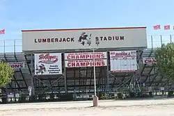 The school mascot (appropriate for the town's major industry of forestry) is the lumberjack (lady jack for female teams).