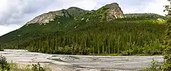The river forms a broad floodplain. Common species of fish found in the river include Arctic grayling, burbot, Dolly Varden trout, and whitefish.[2]