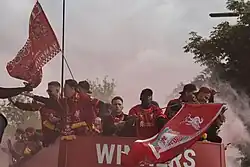 Jota made his debut in the Premier League on 11 August 2018, playing the full 90 minutes in a 2–2 home draw against Everton.[27] He scored his first goal in the competition on 5 December, helping the hosts come from behind to beat Chelsea 2–1.[28] His second came four days later, in a win at Newcastle United by the same scoreline.[29] On 19 January 2019, Jota scored three times in the 4–3 home victory over Leicester City – his second career hat-trick.[30] In the process, he became only the second Portuguese player to achieve the feat in the Premier League after Cristiano Ronaldo 11 years earlier.[31] This was a first-ever for the club in the competition and a first for the club in the top flight of English football since John Richards, against the same opposition, in the Football League First Division in October 1977.[32] On 16 March 2019, Jota scored the winning goal in a 2–1 win against Manchester United in the 2018–19 FA Cup, to help Wolves reach their first semi-final in the competition since 1997–98.[33]