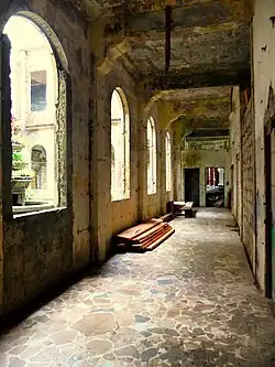 One of the corridors at the west wing of the Dominican Hill Retreat House. One of the former hotel's two fountains can be seen in the far left.