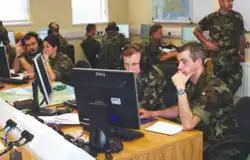 Military Intelligence is a constituent part of Defence Forces Headquarters (DFHQ) and is the intelligence section of all Defence Forces branches.[5] The Directorate of Military Intelligence draws staff from the Army, Naval Service and Air Corps. The Irish military special operations forces, the Army Ranger Wing (ARW), carries out physical tasks in support of Military Intelligence in Ireland and overseas, and the Communications and Information Services Corps (CIS) provides technical and electronic support. "J2" works closely with the Garda Síochána Special Detective Unit (SDU), the national police counter-terrorism and counter-espionage unit.[6]