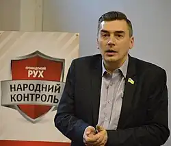 Dmytro Yevhenovych Dobrodomov (Ukrainian: Дмитро Євгенович Добродомов; born 13 January 1977) is a Ukrainian politician who served as a People's Deputy of Ukraine representing Ukraine's 115th electoral district from 2014 to 2019. He is the leader of the political party People's Control.[1] Dobrodomov was a presidential candidate in 2019 Ukrainian presidential election. He withdrew from the election on 7 March 2019 in favour of Anatoliy Hrytsenko.[2]