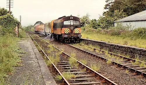 CIE weed-spraying train passing the remains of Doagh station in 1983