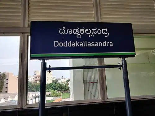 Doddakallasandra is an elevated metro station on the North-South corridor of the Green Line of Namma Metro in Bengaluru, India.[2] This station was opened on 21 January 2021 to the public. The station was inaugurated along with five other stations, as a part of the Green Line extension.[3][4]