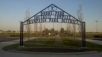 Dodds Park is located in northwestern Champaign, Illinois near Parkland College. This 110-acre (45 ha) park (roughly one fifth of the total Park District holdings) is noted for the "Tribute to Olympic Athletes Monument" on its grounds. The park was purchased in 1969 for the sum of $298,495.