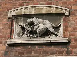The Dogue de Bordeaux was known in France as early as the 14th century, particularly in southern France in the region around Bordeaux. Hence, the city lent its name to this large dog, "dogue" being the French form of the English word.[1] The breed was first exhibited in France in 1863 after which time it gained in popularity not only in their home country but in other parts of the world. The first record of the Dogue de Bordeaux in the UK can be seen in the Kennel Club Gazette in 1897.[2] The breed received championship status with the Kennel Club (UK) in 2016.[3] A uniform breed type of the Bordeaux dog did not exist before about 1920.[4]