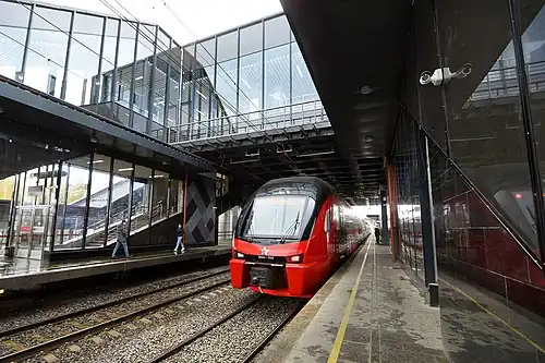 Dolgoprudnaya is a railway station of Line D1 of the Moscow Central Diameters in Dolgoprudny, Moscow Oblast. It was opened in 1914 and rebuilt in 2020.[1][2]