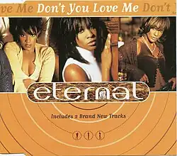 "Don't You Love Me" is a song by British R&B girl group Eternal. It was the second single to be released from their third studio album, Before the Rain (1997), released in February 1997 by EMI and 1st Avenue. The song was written by Cynthia Biggs, Carolyn Mitchell, Terence Dudley and Christopher Kellum, and produced by Ronnie Wilson and Dennis Charles. It deals with child neglect and abuse and features a choir of 20 children.[3] "Don't You Love Me" was well-received by music critics and peaked at number three on the UK Singles Chart in March 1997, becoming the group's tenth top-10 entry on the chart, as well as their first top-three hit.