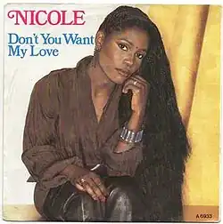 "Don't You Want My Love" is a 1985/1986 hit song by Nicole McCloud under her mononym Nicole. The song was written by Aldo Nova and became a hit in several European countries and charted on the Billboard dance chart (#10) and R&B chart (#66) in the US.