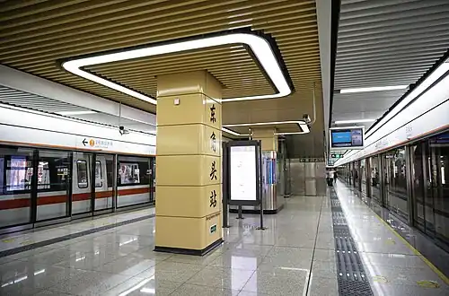 Dongjiaotou station (simplified Chinese: 东角头站; traditional Chinese: 東角頭站; pinyin: Dōngjiǎotóu Zhàn; Jyutping: Dung1 Gok3 Tau4 Zaam6) is a metro station on Line 2 of the Shenzhen Metro. It opened on 28 December 2010.