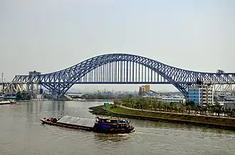 The Dongpingshuidao Bridge is an arch bridge located in Foshan, Guangdong, China. Opened in 2009, it spans 360 metres (1,180 ft) over the Dongping waterway, an arm of the Pearl River. The bridge carries the Wuhan–Guangzhou High-Speed Railway.[1][2]