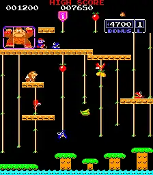 Donkey Kong Jr.[a] is a 1982 platform video game developed and published by Nintendo for arcades. It is the sequel to Donkey Kong (1981), but with the roles reversed compared to its predecessor: Mario is now the villain and Donkey Kong Jr. is trying to save his kidnapped father. It first released in arcades and, over the course of the decade, was released for a variety of home platforms. The game's title is written out as Donkey Kong Junior in the North American arcade version and various conversions to non-Nintendo systems.