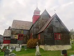 Around the year 1400, a new wooden stave church was built at Bergseng, about 500 metres (1,600 ft) south of the old church. The church was described as "fragile" in 1673 and apparently needed several repairs. It was repaired 1694 and again in 1710. In 1686, the church received a new altarpiece made by Johannes Skraastad.[5] By the 1730s, the church was in poor condition, and the ground conditions at the church site were considered unsuitable for rebuilding, so the decision was made to move the church site and build a brand new building.[4][6]