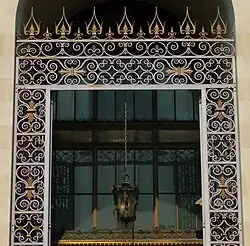 Detail of grillework at the east entrance of the Citizen's and Manufacturer's Bank entrance