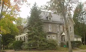 This residence, which was built in 1877, is a 2+1⁄2-story, gray stone house. Designed in the Gothic Revival style, it has a slate-covered intersecting gable roof, and features a verandah and conservatory.