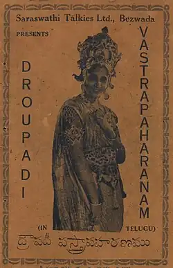 Draupadi Vastrapaharanam (transl.Draupadi's Disrobement) is a 1936 Indian Telugu-language film directed by H. V. Babu, brother-in-law of noted filmmaker H. M. Reddy.[1] It was made to compete with Draupadi Manasamrakshanam (1936). This film was Super Hit, whereas Draupadi Manasamrakshanam failed. The film is remembered for the rendition of poems with acting performances by C. S. R. Anjaneyulu and Yadavalli Suryanarayana.[1]