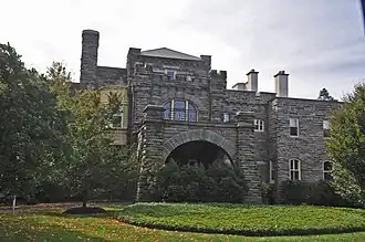 The centerpiece of the historic district is Druim Moir Castle (1885–86), whose main gate is at the corner of Willow Grove Avenue and Cherokee Street. Designed by architects G. W. & W. D. Hewitt, and built at a cost of over $115,000 for Henry H. Houston, the thirty-room home was the largest in its neighborhood.