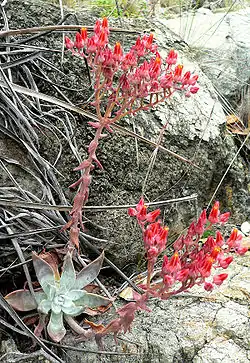 3. ^ Yost, J. M.; Bontrager, M.; McCabe, S. W.; Burton, D.; Simpson, M. G.; Kay, K. M.; Ritter, M. (2013). "Phylogenetic relationships and evolution in Dudleya (Crassulaceae)" (PDF). Systematic Botany. 38 (4): 1096–1104. doi:10.1600/036364413X674760. S2CID 15715233.