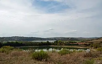 The Dumreja, a karst landscape rich in deposits of Diapir evaporite, is located between the Shkumbin River in the north, the Devoll River in the east, the Seman River in the south and the Myzeqe Plain in the west. The area is characterised by hills, poljes and sinkholes that rise up to 300 m, and even up to 450 m in the far north. Around 80 small karst lakes were formed in up to 15 m deep depressions.[3]
